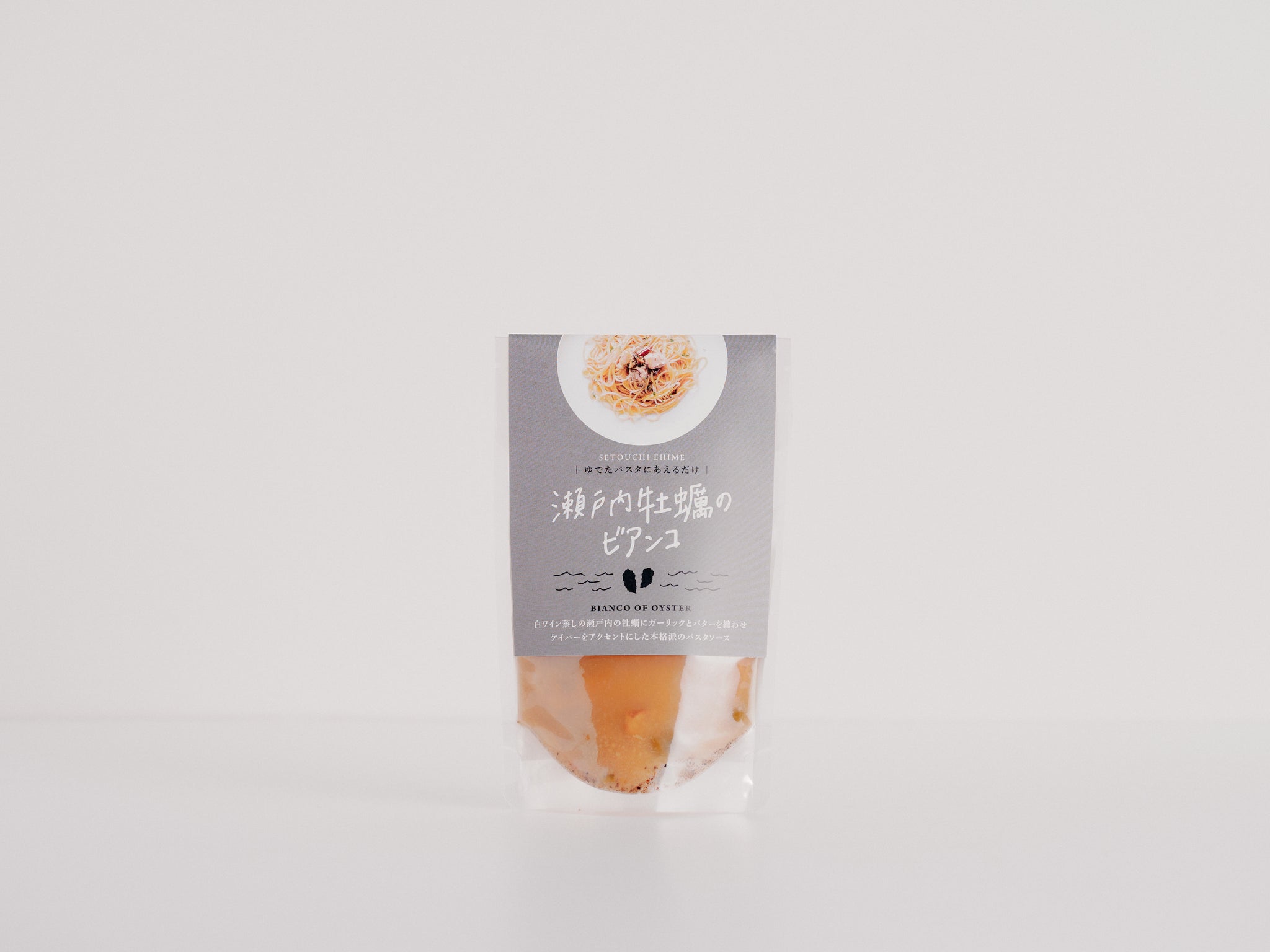 白ワイン蒸しの瀬戸内牡蠣にガーリックとバター、ケイパーをアクセントにした本格派の                 パスタソース。茹でたパスタにあえるだけの手軽さで、瀬戸内イタリアンをどうぞ。