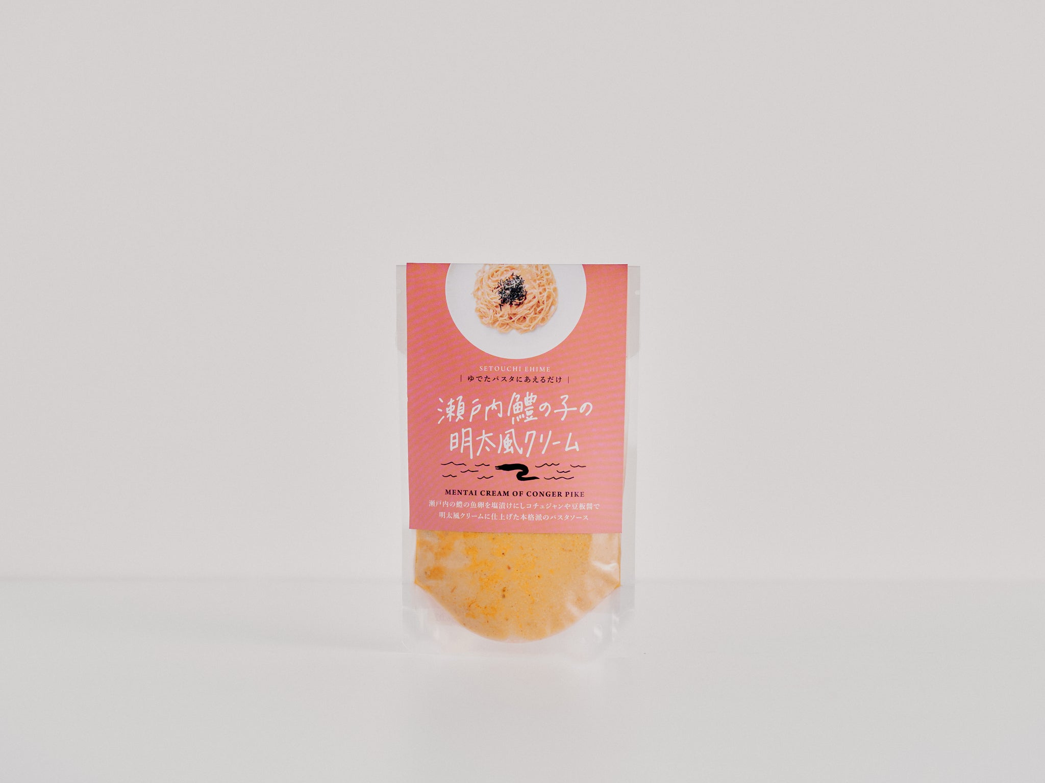 瀬戸内の鱧の魚卵を塩漬けにし、コチュジャンや豆板醤で明太風に仕上げた本格パスタソース。本来捨てられる鱧の卵を美味しく食べてサステナブル。茹でたパスタにあえるだけの手軽さで、瀬戸内イタリアンをどうぞ。